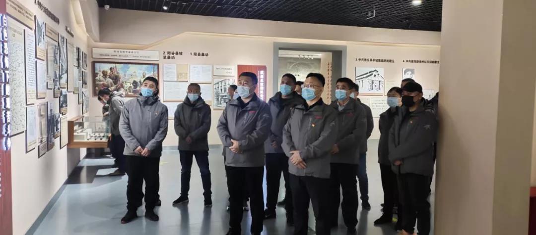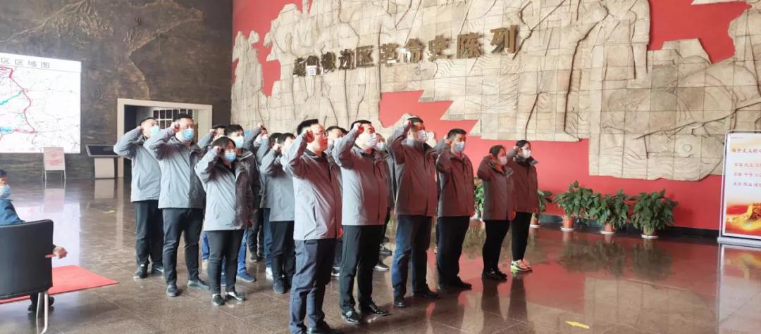 在菏澤冀魯豫邊區(qū)革命紀念館序廳內(nèi),由支部書記肖培飛同志領(lǐng)誓,全體黨員整齊列隊,鄭重舉起右手,集體重溫入黨誓詞。