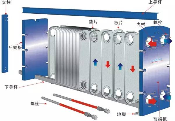 板式換熱器的墊片在使用時如果發(fā)生滲漏、斷裂、老化等現(xiàn)象,要及時更換。更換應(yīng)按以下順序進(jìn)行。