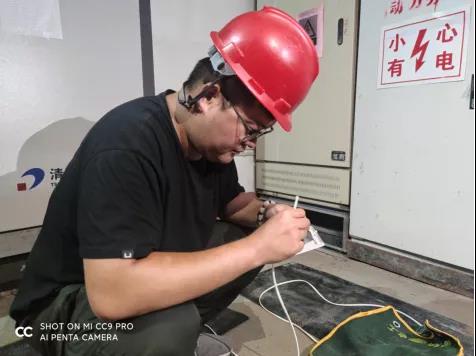 ▲ 運(yùn)營管理二部員工孫海超進(jìn)行線路整改